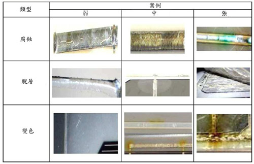 說明:濕熱試驗的條件是85℃/85%R.H.、時間:1000小時,確定模組抵抗濕氣長期滲透之能力,透過濕熱試驗可找出的瑕疵:CELL脫層、EVA(脫層、變色、產生氣泡、霧化、褐變)、串連線變黑、TCO腐蝕、銲點腐蝕、Thin-film變黃變色、接線盒脫膠脫落..等,但是依據相關Solar廠的試驗結果,其1000小時是不夠的,實際狀況發現能夠讓模組發生問題的時間至少需要3000~5000小時以上。